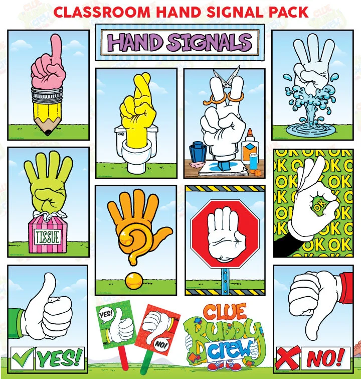 visual hand signal posters with yes and no paddles