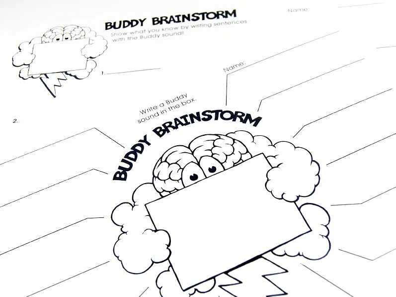On the sentence Buddy Brainstorm sheet, practice writing sentences featuring the words they have created with the word Buddy Brainstorm sheet! Print and put in a sheet protector, then use and reuse for discovering new words!