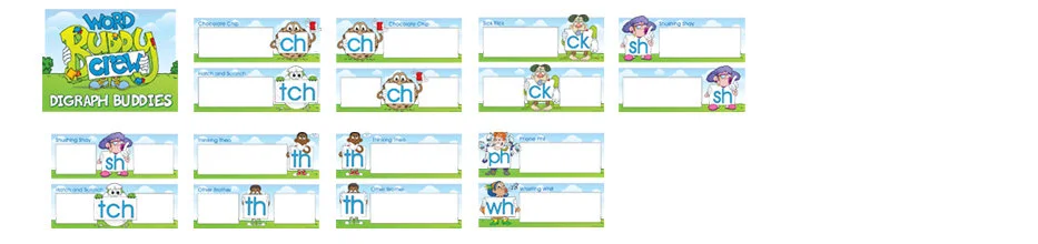 Digraph Buddy Crew is a fun and interactive way to introduce consonant digraphs. Each Consonant Digraph Buddy uses character recognition to help your student recall and differentiate consonant digraphs to quickly match them to the sounds they represent.