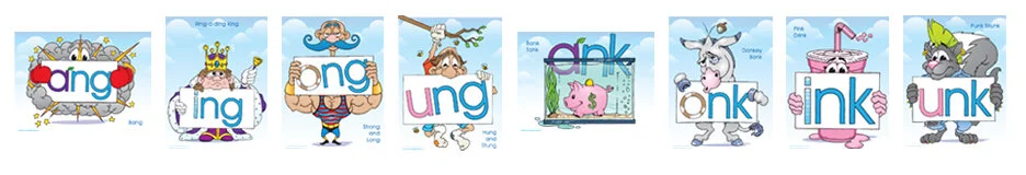 Hang on, It gets weird with Bang! (ANG), Ring-a-ding King (ING), Long and Strong (ONG), Hung and Stung (UNG). Bank Tank (ANK), Pink Drink (INK), Donkey Bonk (ONK), and Punk Skunk (UNK)!