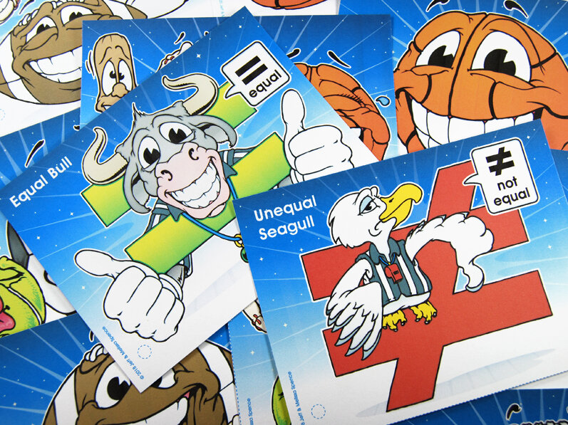 Introduce and feature Equal Bull and Unequal Seagull with colorful 8.5” x 11” posters. After they are properly introduced, add them to your classroom wall as ready reference for your students!